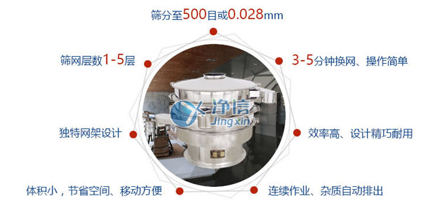 1.篩分過程全封閉,粉末不飛揚、液體不泄露、改善生產(chǎn)環(huán)境,篩分最細可達500目(28微米)過濾最細可達5微米。